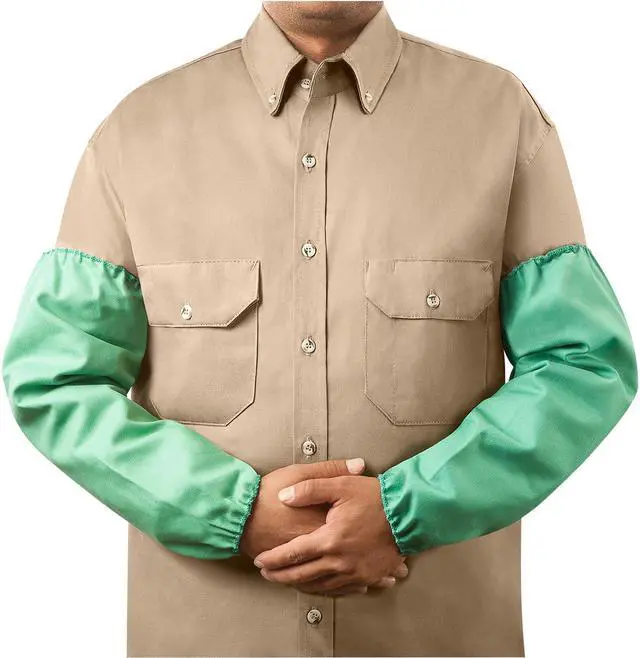 Flame-Resistant Sleeve, Color Green, Cuff Style Elastic, Fabric Weight 9 oz, Heat Protection Type Sparks, Welding, Material Cotton, Size Universal, Sleeve Length 18 in, Standards ASTM D6413-10, Stitching Material Cotton/Polyester, 1 Pair. This item has been restricted from sale in the following state (s): []