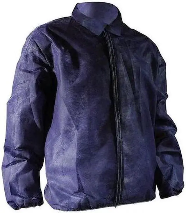 Disposable Lab Coat, Anti-Static No, Chest Size - Maximum 46 in, Chest Size - Minimum 42 in, Closure Type Hook-and-Loop, Collar Style Plain, Color Blue, Cuff Style Elastic, Federal 209E Cleanroom Class 10, 000, Hazard Type Non-Hazardous Dry Particulates, ISO Cleanroom Class ISO 7 (Class 10, 000) and above, Material Polypropylene, Material Weight 42 g/sq m, Named Size L, Overall Length 31 in, Seam Style Serged, Sleeve Length Type Long, Standards ANSI, Package Quantity 50