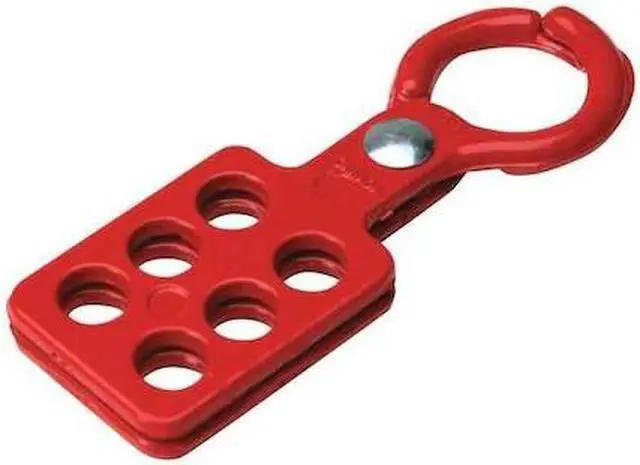Lockout Hasp, Closed Jaw Hole Size 961/1000 in, For Maximum Padlock Shackle Diameter 197/500 in, Hasp Closure Type Scissor Action, Lockout Material Aluminum, Lockout Material Finish Powder Coated, Maximum Number of Padlocks 6, Product Type Standard Hasp, Resistance Properties Chemical Resistant, Hasp Style Standard, Header None/No Header, Legend No Legend, Lockout Color Red, Maximum Temperature 350 Degrees F, Minimum Temperature -20 Degrees F, Number of Jaws 1, Overall Length 4 311/1000 in