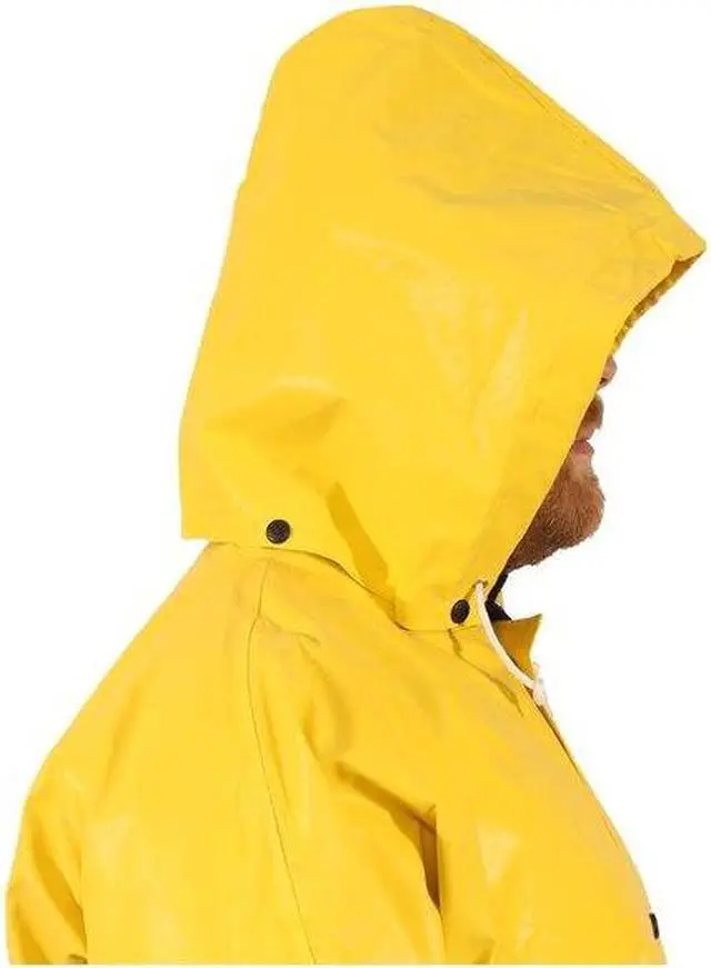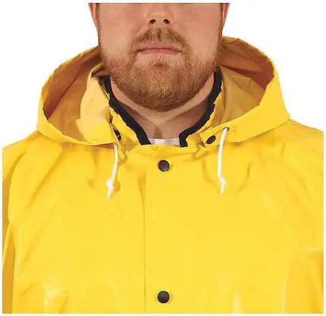 Flame-Resistant Rain Hood, Hood Attachment Style Snaps, Material Nylon, Color Yellow, Style Rain Hood, Size L, Seam Style Stitched, Taped, Thickness 0.3 mm, Compatible with Manufacturer Model Number J12207, Compatible with Grainger Part Number 45JY54, 45JY55, 45JY56, 45JY57, 45JY58, 45JY59, 45JY60, Compatible with Brand Magnaprene, Coating Material Neoprene, Fabric Weight 9 oz, Hood Features Detachable, Resists Acids, Chemicals, Oils, Solvents, Standards ASTM D6413. This item has been restricted from sale in the following state (s): []