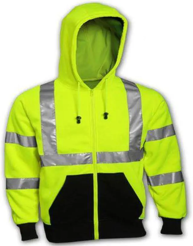 Hooded Sweatshirt, ANSI Class 3, ANSI Type R, Sweatshirt Style Hoodie, Number of Outside Pockets 2, Material Polyester, Front Closure Type Zipper, Color Green, Fabric Weight 8.4 oz, Size 2XL, Features Fluorescent Background Material for Excellent Daytime Visibility, Includes Hood Yes, Standards ANSI, ISEA, Maximum Chest Size 58 in, Cuff Style Elastic, Hood Features Zip-Up, Length 31 in. This item has been restricted from sale in the following state (s): []