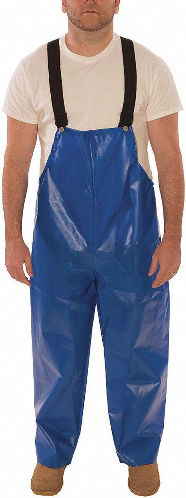 California Proposition 65: This product contains a chemical known to the State of California to cause birth defects or other reproductive harm. Rain Bib Overall, Style Rain Bib Overall, Material Polyurethane, Gender Men's, Size L, Size-Body Type Regular, Color Blue, Inseam 30 in, Maximum Waist Size 42 in, High-Visibility No, ANSI Class Not Rated, ANSI Type Unrated, Number of Inside Pockets 0, Number of Outside Pockets 0, Includes Lining Yes, Lining Material Nylon, Ankle Type Open, Fabric Weight 5.5 oz/sq yd, Thickness 10 mil, Fly Closure Type None, Standards ASTM E96, Insulated for Cold Conditions No, Reflective Stripe Border Type None. This item has been restricted from sale in the following state (s): []