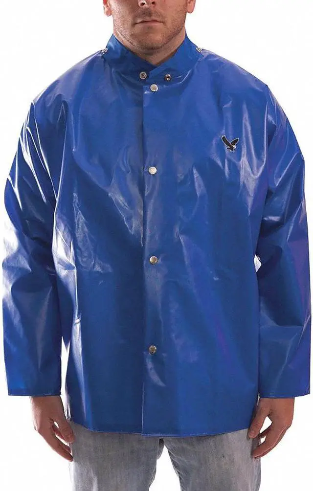California Proposition 65: This product contains a chemical known to the State of California to cause birth defects or other reproductive harm. Rain Jacket, Garment Type Rain Jacket, Style Rain Jacket, Size 2XL, Number of Inside Pockets 0, Number of Outside Pockets 0, Color Blue, Front Closure Type Snaps with Storm Flap, Gender Men's, Material Nylon/Polyurethane, High-Visibility No, ANSI Class Not Rated, Insulated for Cold Conditions No, Back Stripe Pattern None, Includes Hood No, Hood Style None, Length 33 in, Length Type Hip, Includes Removable Liner No, Includes Lining Yes, Maximum Chest Size 54 in, Lining Material Polyurethane. This item has been restricted from sale in the following state (s): []