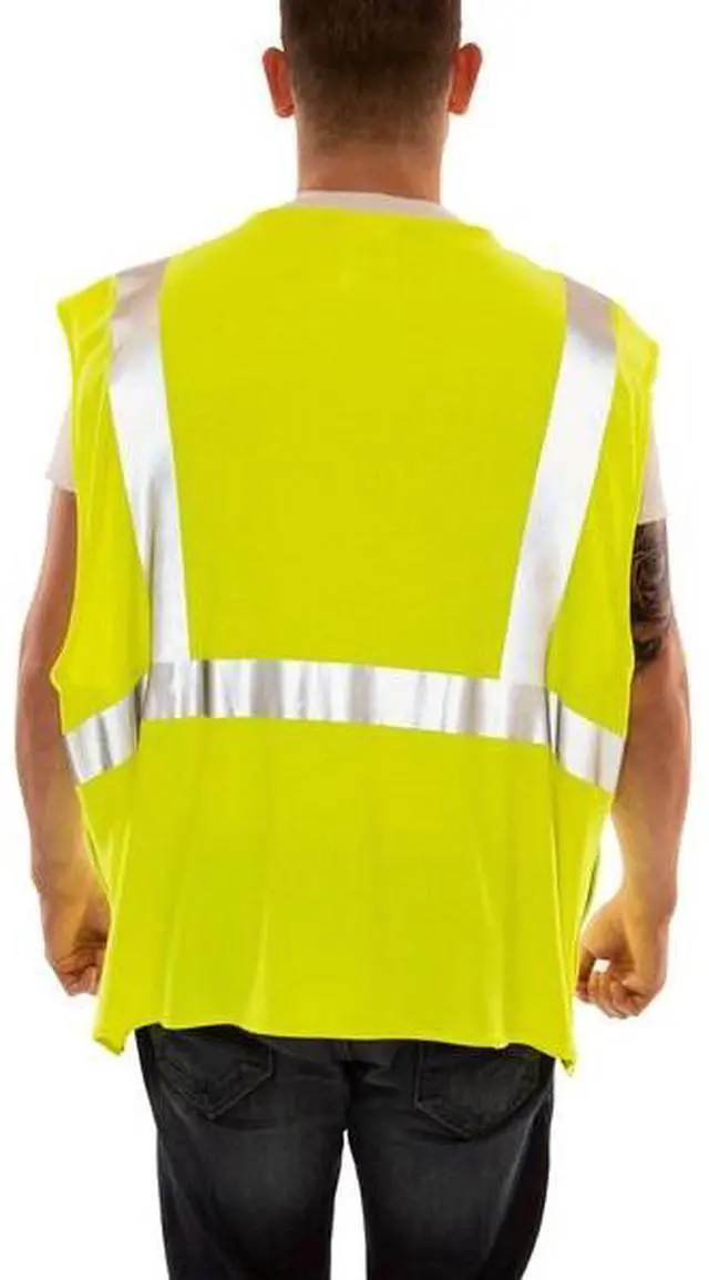 High Visibility Vest, ANSI Class 2, Vest Size 36 In. to 42 In., Traffic Safety Vest Color Yellow/Green, Fits Chest Size 36 In. to 42 In., Gender Unisex, Stripe Color Orange/Red, Vest Material Polyester Mesh, Vest Closure Type Hook-and-Loop, ATPV Rating 6.8 cal/sq cm, Hazard Risk Category (HRC) 1, Vest Stripe Color Family Orange/Red, Back Stripe Pattern U, Vest Length 29 in, Number of Pockets (Inside) 2, Number of Pockets (Outside) 0, Number of Pockets with Closure 0, Features 5 Point Breakaway