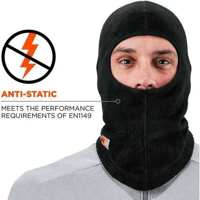 Flame Resistant Balaclava, Over The Head, Black, Size Universal, Material Fleece, Liner Material Fleece, Stretch Knit Adjustment Type, Covers Ears, Head, Standards ASTM F1506, NFPA 70E. This item has been restricted from sale in the following state (s): []