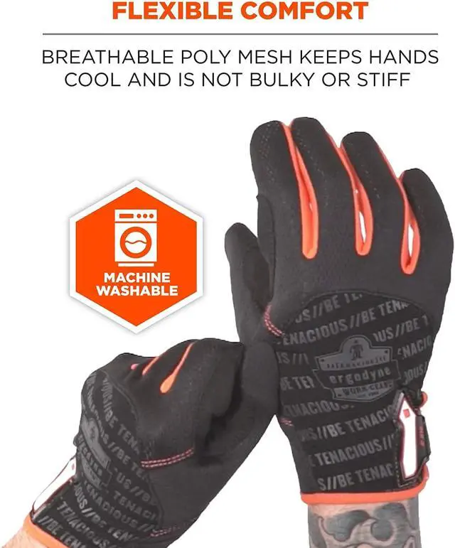 High quality utility gloves provide all-purpose protection, dexterity and comfort. Durable synthetic leather palm. Reinforced thumb saddle wear area for added strength. Breathable poly mesh construction designed for user comfort. Low-profile molded hook and loop closure with ID space. Pull-on tab for easy on/off. Style: Utility; Wrist Style: Hook and Loop Closure; Material(s): Synthetic Leather; Color(s): Black.