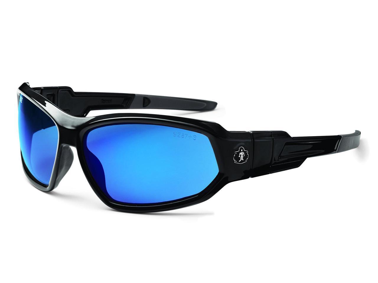 Ergodyne 56092 Skullerz Loki Safety Glass/Goggle, Black Frame/Blue Mirror Lens,Nylon/Polycarb