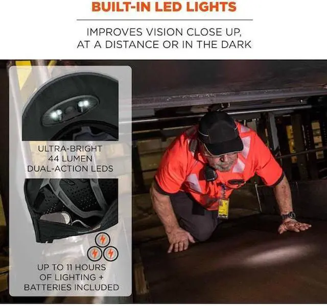 Bump Cap, Head Protection Style Long Brim Baseball, Head Protection Color Black, Head Protection Material Polyethylene, Fits Hat Size One Size Fits Most, Accessory Mounting Options None, Head Protection Venting Yes, Includes LED Lights Yes, Standards EN 812-2012, Color/Graphics Type Basic Colors, Head Protection Graphics No Graphics, Suspension Adjustment Type Hook-and-Loop. This item has been restricted from sale in the following state (s): []