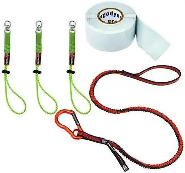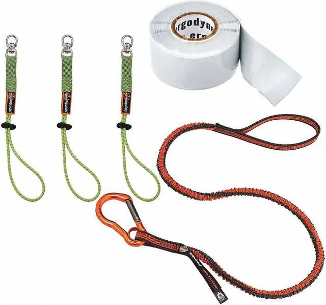 Tool Tethering Kit, Additional Kit Contents Tape Wrap, Attachment Point Style Corded Strap, Attachment Points Included (3) Corded Straps, Brand and Series Ergodyne Squids, Kit Contents Attachment Point, Tether, Tape Wrap, No. of Attachment Points Included 3, No. of Tethers Included 1, Series Squids, Tether Style Elastic, Tethering Component Kit, Tethers Included (1) Elastic Tether, Weight Capacity 10 lb
