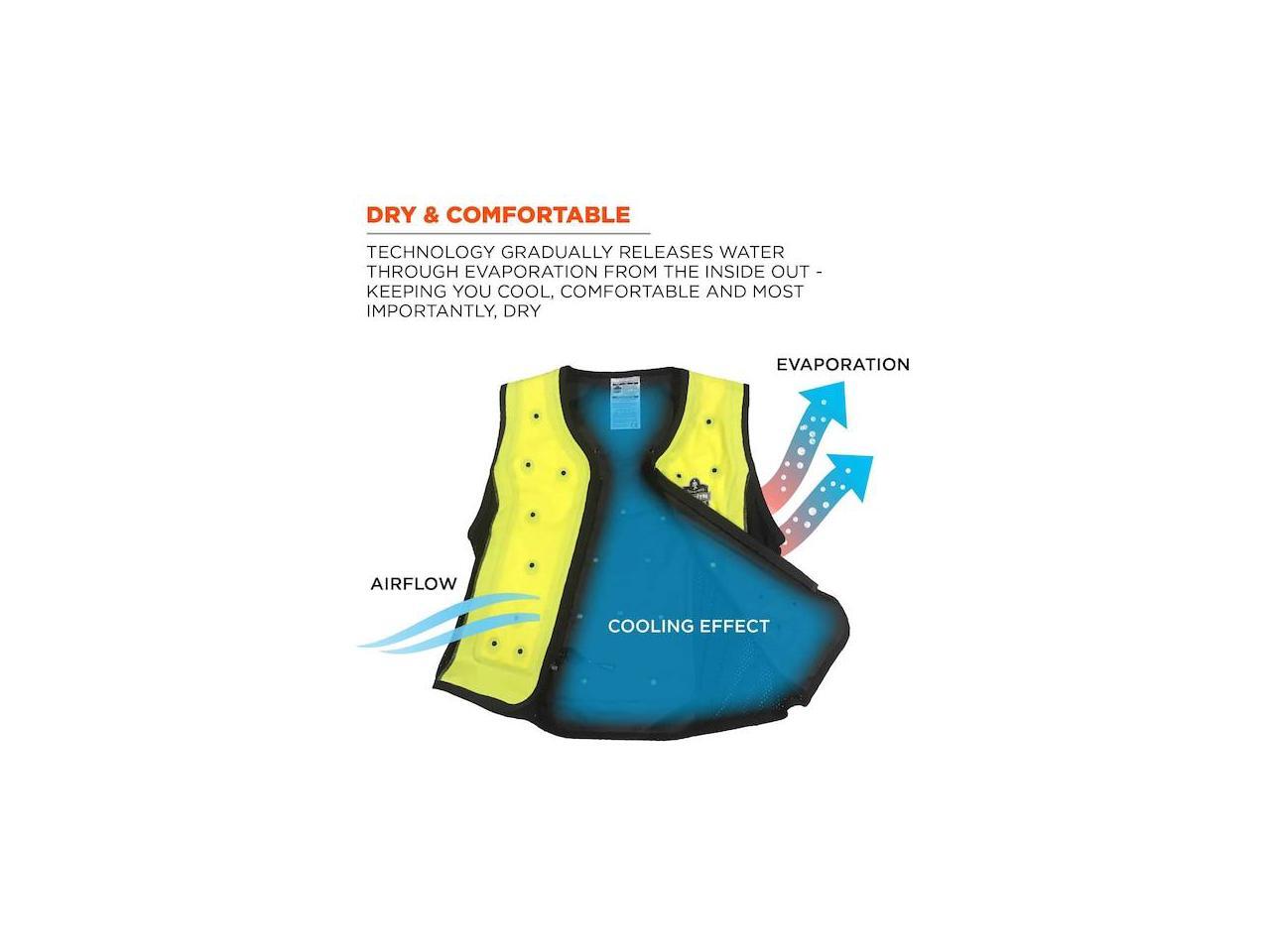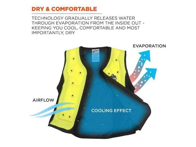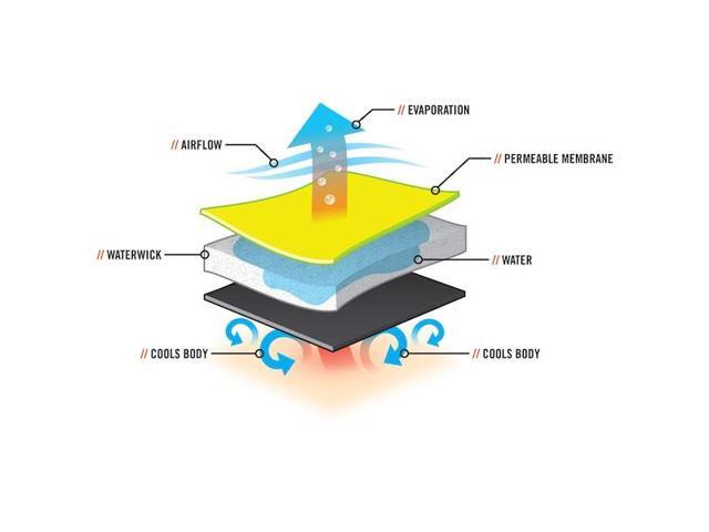 - Exclusive dry technology keeps wearer completely dry and comfortable during the entire evaporative cooling process.