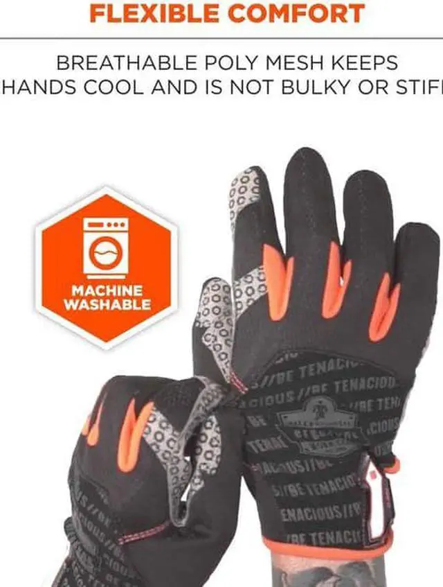 PROFLEX BY ERGODYNE 821 Mechanics Gloves, XL, Black, Breathable Polyester Mesh