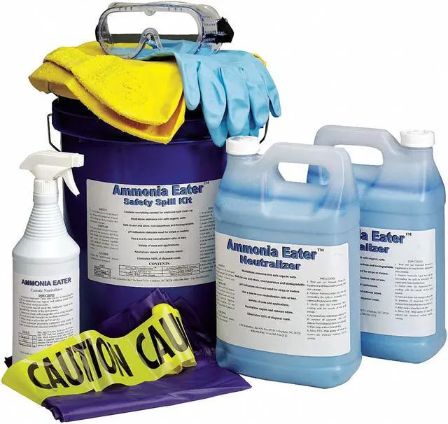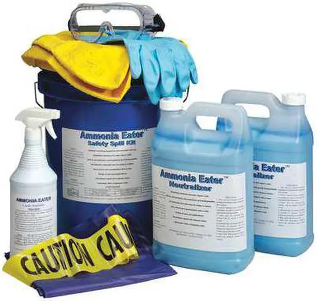 Spill Kit, Fluids Absorbed Ammonia, Neutralizes Chemical Type Ammonia, Volume Absorbed Per Kit 2 gal, Container Type Bucket, 2 gal Container Capacity, 12 in W x 12 in L x 15 in H Container Size, Blue, Filled, Sorbents Included (2) Neutralizers (1 gal), PPE Included (2) Pairs Goggles, (2) Vinyl Aprons, (4) Hazmat Boot Covers, (4) Latex Gloves, Additional Components Included Instructions, Lockable No, UN Rating Not Applicable, NSF Rating Not Rated, Static Dissipative No, UV Resistant No. This item has been restricted from sale in the following state (s): []