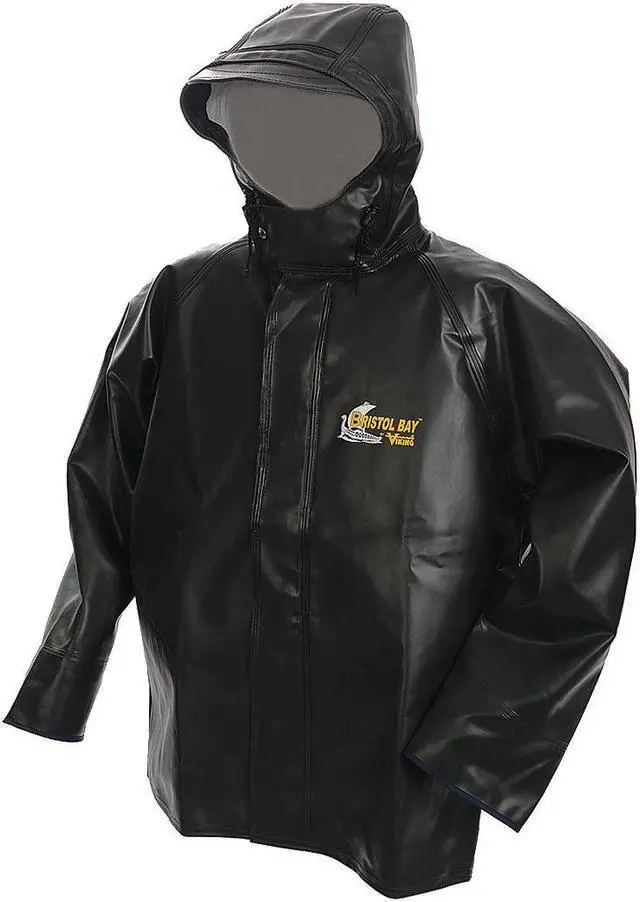 California Proposition 65: This product contains a chemical known to the State of California to cause birth defects or other reproductive harm. Rain Jacket with Hood, Size XL, Number of Inside Pockets 0, Number of Outside Pockets 0, Color Green, Front Closure Type Snaps, Gender Men's, Material 0.75 mm PVC with 9 oz Cotton Twill backing, Includes Hood Yes, Hood Style Attached, Length 33 in, Lining Material Cotton Twill, Features Chemical Resistant, Wind Resistant, Thickness 0.75 mm. This item has been restricted from sale in the following state (s): []