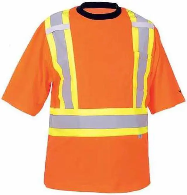 High Visibility Short Sleeve Shirt, Gender Unisex, ANSI Class 2, Shirt Style T-Shirt, Material Polyester/Cotton, Number of Outside Pockets 1, Color Orange, Size 2XL, Standards ANSI/ISEA 107-2015 Type R, Class 2, CSA Z96-15 Class 2, Level 2, Sleeve Type Short, Maximum Chest Size 129 1/2 in, ANSI Type R. This item has been restricted from sale in the following state (s): []