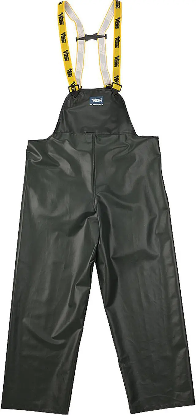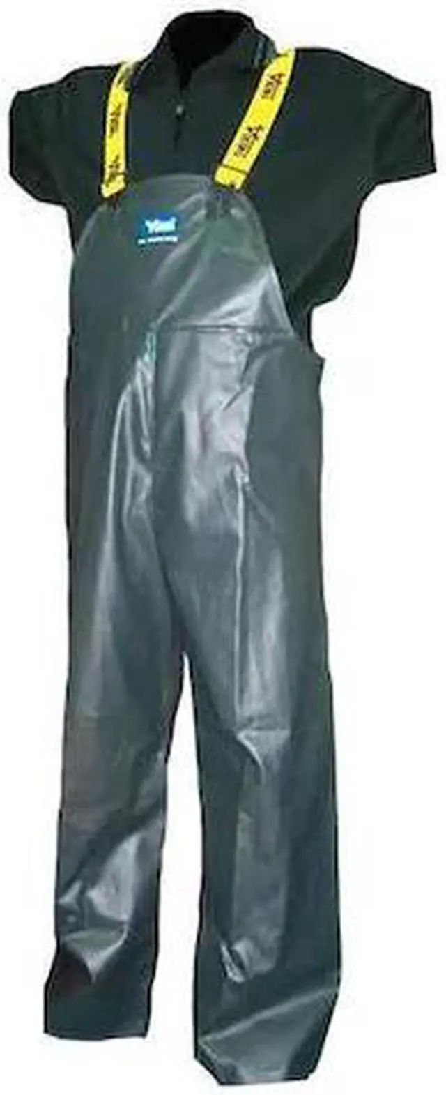 California Proposition 65: This product contains a chemical known to the State of California to cause birth defects or other reproductive harm. PVC Rain Bib Pants, Style Bib Pant, Material Polyester, PVC, Gender Men's, Size XL, Color Green, Inseam 32 1/2 in, Maximum Waist Size 39 in, High-Visibility No, ANSI Class Not Rated, ANSI Type Unrated, Number of Inside Pockets 0, Number of Outside Pockets 0, Includes Lining Yes, Lining Material Polyester, PVC, Ankle Type Straight Cuff, Fabric Weight 0.45 mm, Thickness 0.45 mm, Fly Closure Type Pull On, Includes Elastic Suspenders, Reversible Bib, Pen Holder Slot. This item has been restricted from sale in the following state (s): []