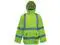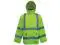 Hi-Viz Safety Jacket, Style Rain Jacket, Size 4XL, Number of Inside Pockets 1, Number of Outside Pockets 2, Color Green, Front Closure Type Double Storm Flap, Hook-and-Loop, Zipper, Gender Men's, Material Polyester, Polyurethane, High-Visibility Yes, Includes Hood Yes, Hood Style Detachable, Length 37 in, Includes Lining Yes, Maximum Chest Size 58 in, Lining Material Polyester. This item has been restricted from sale in the following state (s): []