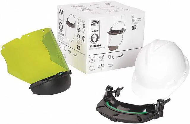 Hard Hat, ANSI Classification Type 1, Class E, Head Protection Style Front Brim, Head Protection Suspension Type Ratchet (4-Point), Head Protection Color White, Head Protection Graphics No Graphics, Fits Hat Size 6-1/2 to 8, Head Protection Material Polyethylene, Head Protection Venting No, High-Visibility No, Standards ANSI/ISEA Z 89.1 -2009, CSA Z 94.1 -2005, Series V-Gard (R). This item has been restricted from sale in the following state (s): []