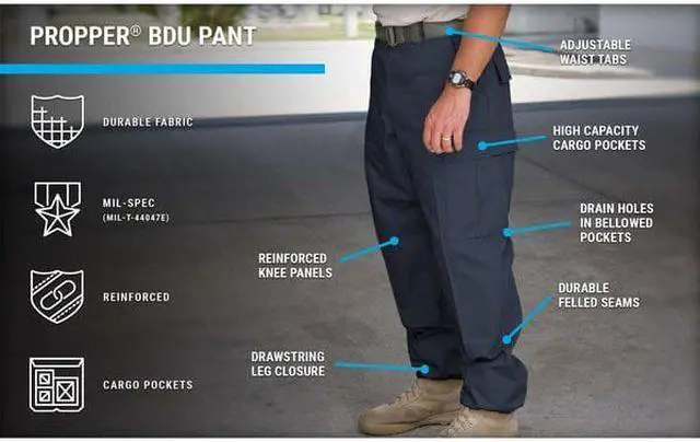 Mens Tactical Pant, Material 65 Percent Polyester/35 Percent Cotton Ripstop, Color Black, Size L Reg, Fits Waist Size 35 to 38 In., Inseam 29-1/2 to 32-1/2 In., Pockets Y, Fabric Weight 6.5 oz
