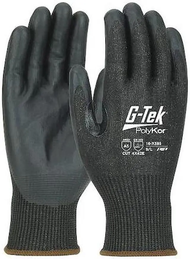 Cut-Resistant Glove, ANSI/ISEA Cut Level A5, Glove Style Knit, Knit Material PolyKor (R), ANSI/ISEA Abrasion Level 3, Hand Protection Style Glove, Additional Hazard Protection None, Base Coating Material Foam Latex, Glove Coating Cover Palm, Glove Hand Style Left and Right, Double-Dipped No, Coating Type Dipped, Glove Performance General Purpose, Package Quantity 12