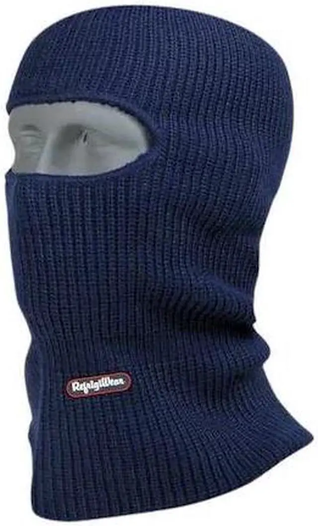 The RefrigiWear Open-Hole Face Mask is a double layer acrylic knit balaclava with a long neck for draft protection. The mask is available in multiple colors, including HiVis Lime and HiVis Orange, which is perfect for hunters, fishing, work sites, and construction job sites.