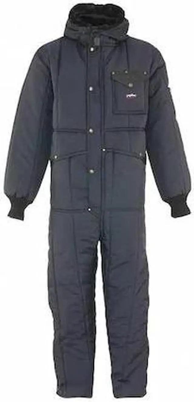 Coverall Suit With Hood Navy 4Xl, Insulated for Cold Conditions Yes, Temperature Rating Down to -50 Degrees F, Gender Men's, Material Nylon, Front Closure Type Zipper, Fabric Weight 400 den, Number of Outside Pockets 4, Collar Style Hooded, Includes Hood Yes, Color Navy, Maximum Chest Size 60 in, Maximum Waist Size 54 in, Inseam 32 1/2 in, Size 4XL, Size-Body Type Regular, Sleeve Type Long, Minimum Waist Size 52 in, Minimum Chest Size 58 in, Cuff Style Knit