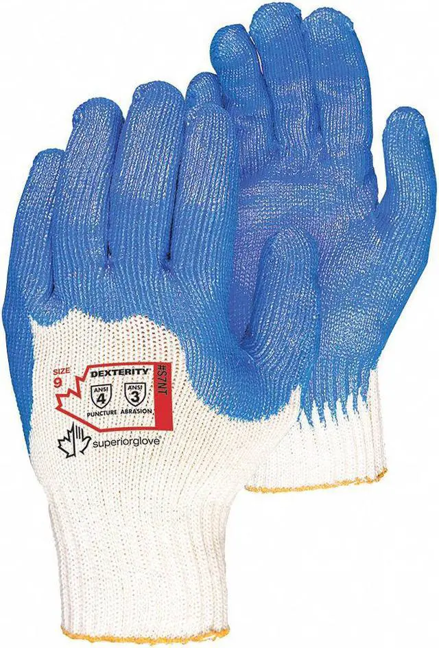 Knit Gloves, Glove Style Knit, Knit Material Cotton, ANSI/ISEA Abrasion Level 3, Additional Hazard Protection None, Glove Coating Cover 3/4, Glove Hand Style Left and Right, Double-Dipped No, Coating Type Dipped, Glove Performance General Purpose, Package Quantity 12. This item has been restricted from sale in the following state (s): []