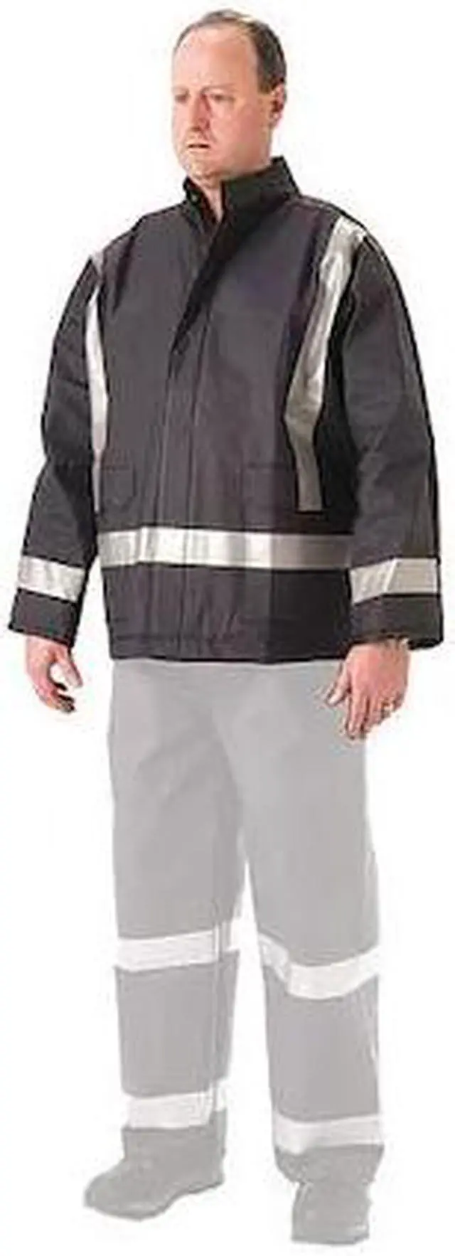 ANSI Class 3, ATPV Rating 16 cal/sq cm, Arc Flash PPE Category 2, Closure Type Non-Conductive Zipper, Collar Style Hood-in Collar, Color Navy, Fabric Weight 5 oz, Features Fall Protection Access on Back of Jacket, Gender Men's, High-Visibility No, Hood Style Packable Hood in Collar, Includes Hood Yes, Includes Lining No, Flame Resistant Rain Jacket, Length 30 in, Lining Material Kevlar (R), Nomex (TM), Material Kevlar (R), Nomex (TM), Maximum Chest Size 50 in, Minimum Chest Size 48 in.