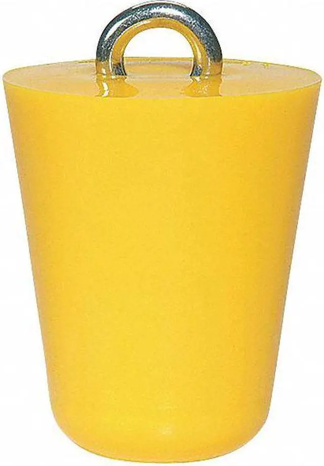 Drain Plug, Color Yellow, Diameter At Top 4 in, Fits Drain Dia. 3 1/2 in, Handle Material Metal, Handle Type Eye Bolt, Height 5 1/2 in, Plug Material Polyurethane, Product Weight 1.7 lb, Series PLR. This item has been restricted from sale in the following state (s): []