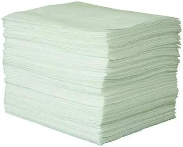 Product Type Sorbent Pad, Fluids Absorbed Oils, For Use With Chemical or Metal Type Oil Only, Size 15 in x 19 in, Volume Absorbed Per Pad 42 1/4 oz, Volume Absorbed per Pkg. 21 gal, Color/Pattern White, Material Polypropylene, Number of Layers 1, Perforated Not Perforated, Perforated Size Not Perforated, Package Quantity 100. This item has been restricted from sale in the following state (s): []