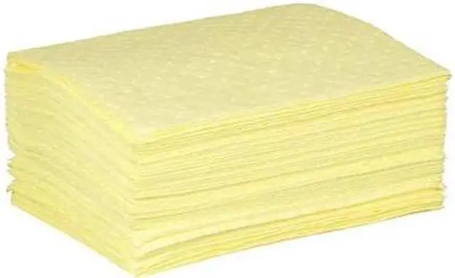 Product Type Sorbent Pad, Fluids Absorbed Acids, Bases, For Use With Chemical or Metal Type Citric Acid, Hydrofluoric Acid, Sodium Hydroxide, Size 15 in x 19 in, Volume Absorbed Per Pad 18 oz, Volume Absorbed per Pkg. 11 gal, Color/Pattern Yellow, Material Polypropylene, Number of Layers 1, Perforated Not Perforated, Perforated Size Not Perforated, Package Quantity 50. This item has been restricted from sale in the following state (s): []