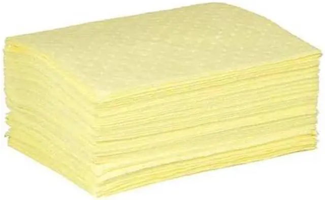 Product Type Sorbent Pad, Fluids Absorbed Acids, Bases, For Use With Chemical or Metal Type Citric Acid, Hydrofluoric Acid, Sodium Hydroxide, Size 15 in x 19 in, Volume Absorbed Per Pad 17 oz, Volume Absorbed per Pkg. 7 gal, Color/Pattern Yellow, Material Polypropylene, Number of Layers 1, Perforated Not Perforated, Perforated Size Not Perforated, Package Quantity 50. This item has been restricted from sale in the following state (s): []