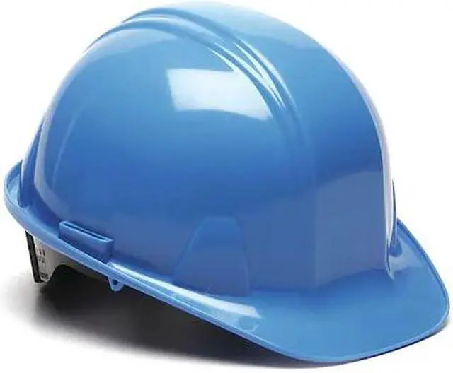 Hard Hat, ANSI Classification Type 1, Class E, Head Protection Style Front Brim, Head Protection Suspension Type Ratchet (4-Point), Head Protection Color Light Blue, Head Protection Graphics No Graphics, Fits Hat Size 6-1/2 to 8, Head Protection Material Polyethylene, Accessory Mounting Options Side-Slots, Head Protection Venting No, High-Visibility No, Standards ANSI Z 89.1 -2014, Series SL