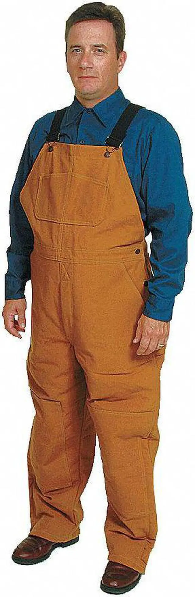 Bib Overalls, Gender Men's, Material Nylon, Number of Outside Pockets 4, Lining Material Cotton, Color Brown, Inseam 31 in, Size 3XL, Includes Hammer Loop No. This item has been restricted from sale in the following state (s): []