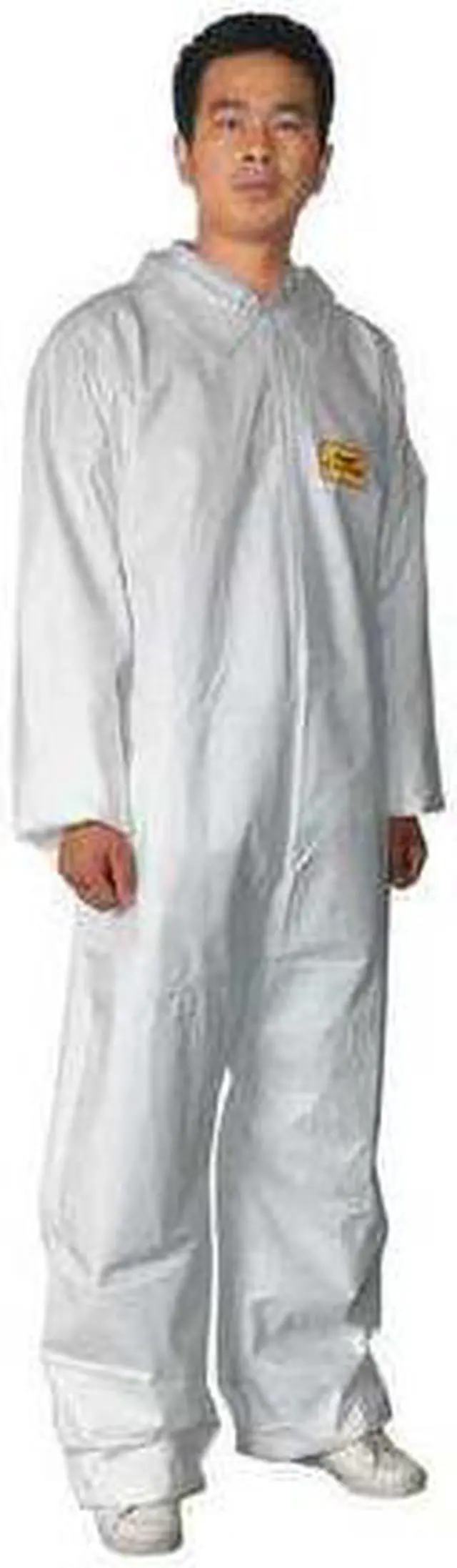 Collared Disposable Coveralls, Ankle Closure Elastic, ANSI 107 Performance Class Not Applicable, Anti-Static No, Attached Hood No, Breathable Back Style Not Applicable, Chest Size - Maximum 39 1/4 in, Chest Size - Minimum 36 in, Closure Type Zipper, Collar Style Mandarin, Color White, Coverall Style Collared Coverall, Cuff Style Elastic, Features Open Wrists and Ankles, Gas Tight No, Hazard Type Non-Hazardous Dry Particulates, Non-Hazardous Liquids, Height - Maximum 69 1/2 in