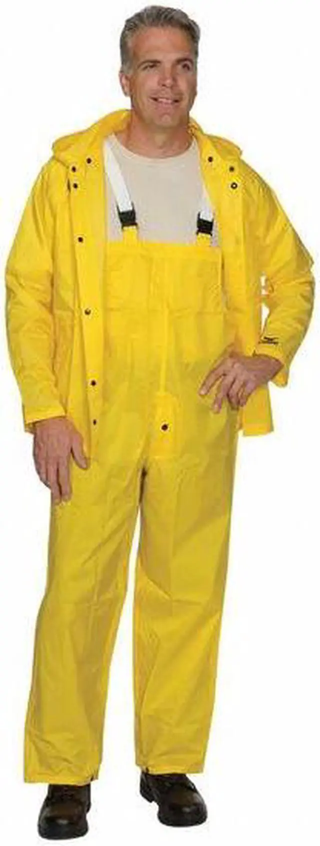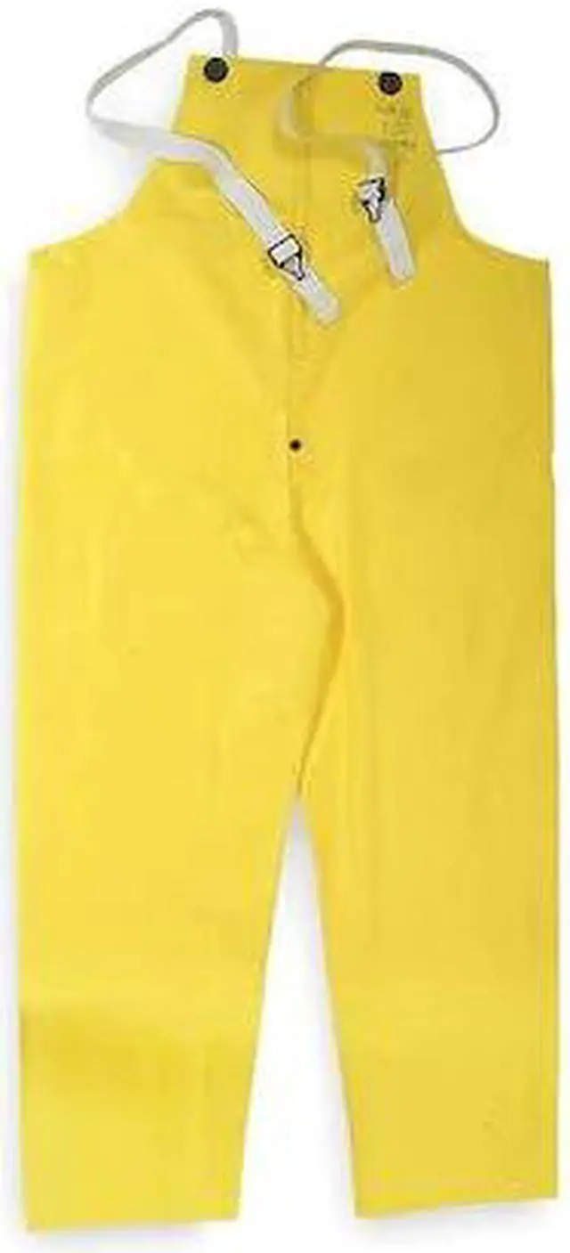 California Proposition 65: This product contains a chemical known to the State of California to cause birth defects or other reproductive harm. FR Rain Bib Overall, Material Nylon, Gender Men's, Size XL, Color Yellow, Inseam 31 in, Maximum Waist Size 46 in, High-Visibility No, ANSI Class Not Rated, Number of Inside Pockets 0, Number of Outside Pockets 0, Includes Lining No, Ankle Type Open, Fabric Weight 112 g/sq m, Thickness 6.7 mil, Standards ASTM D6413, Insulated for Cold Conditions No, Waist Closure Snaps, Will Fit Over Boots No, Includes Elastic Suspenders, Raglan Shoulders. This item has been restricted from sale in the following state (s): []