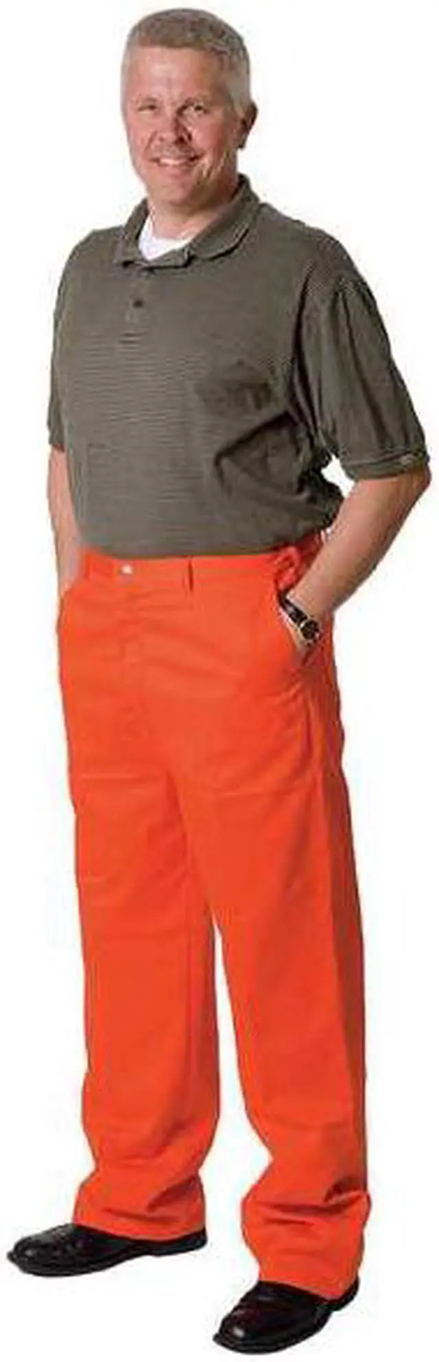 California Proposition 65: This product contains a chemical known to the State of California to cause birth defects or other reproductive harm. Flame-Retardant Treated Cotton Pants, Color Orange, Fabric Weight 9 oz, Inseam 32 in, Number of Pockets 4, Size S