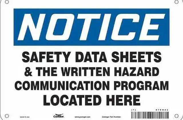 California Proposition 65: This product contains a chemical known to the State of California to cause birth defects or other reproductive harm. Safety Sign, Vertical Rectangle, Number of Printed Sides 1, English, Sign Format Traditional OSHA, Sign Legend Safety Data Sheets & The Written Hazard Communication Program Located Here, Sign Legend Background Color White, Sign Legend Style Text