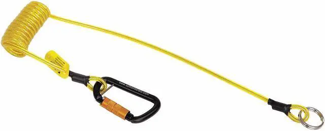 Quick Ring Coil, Anchorage End Connection Ring, Anchorage End Material Aluminum, Brand and Series 3M DBI-SALA, Color Black, Yellow, For Tool Type Hammer Holster, Hardware Material Steel, Max. Working Length 62 in, Tether Style Coiled, Tethering Component Tether, Tool End Connection Carabiner, Weight Capacity 2 lb