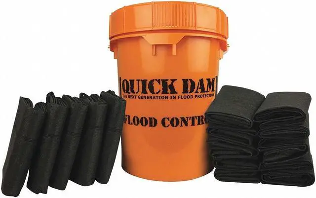 Flood Barrier Kit, Black, Orange, Length 5 ft, Width 14 in, Weight Capacity 15 lb, Polypropylene, For Water Type Freshwater, Package Quantity 15. This item has been restricted from sale in the following state (s): []
