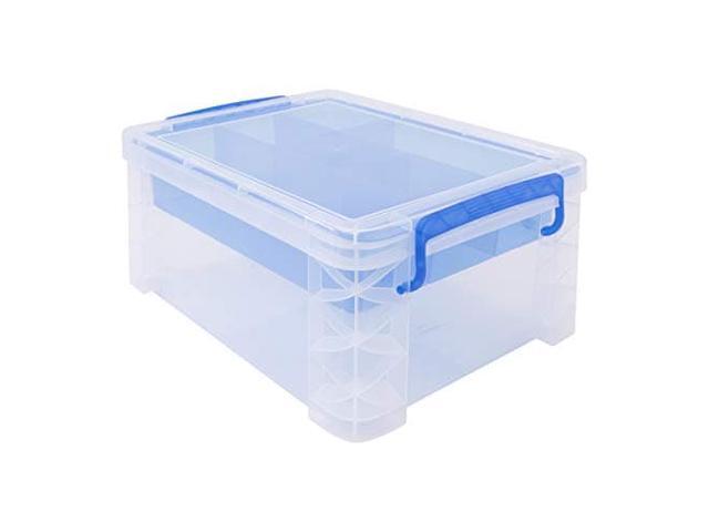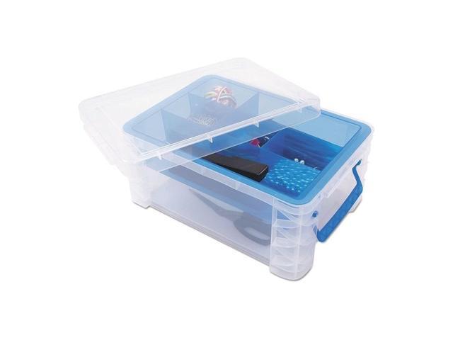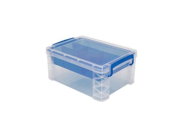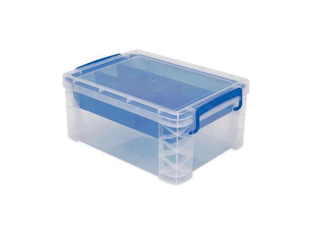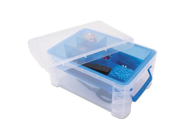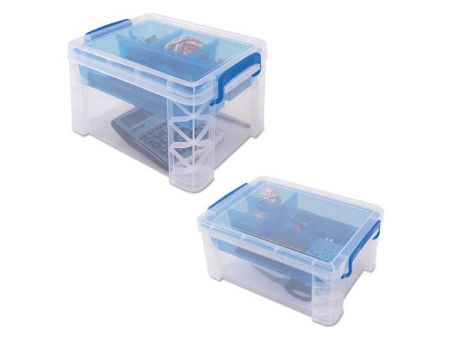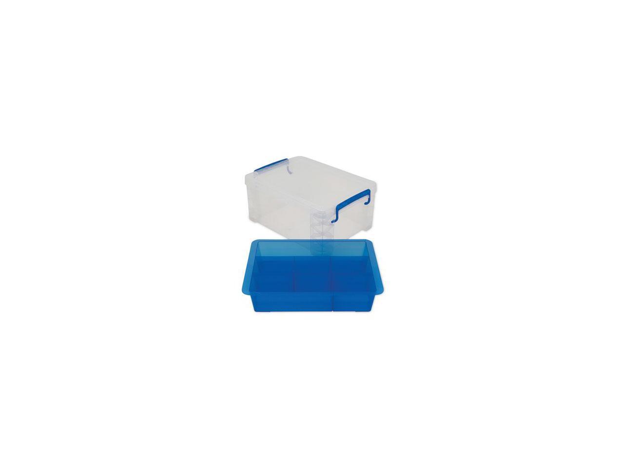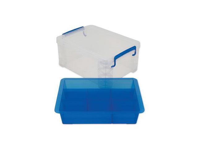 Advantus 37371 Super Stacker Divided Storage Box, Clear W/Blue Tray/Handles, 10.3 X 14.25X 6.5
