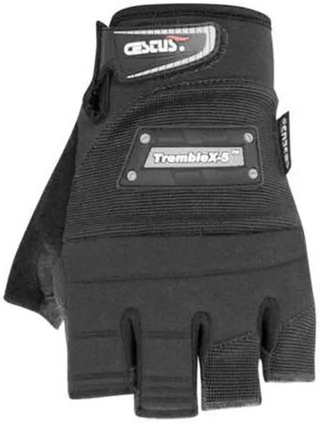 TheTrembleX®-5 is a fingerless glove that has silicone covered Hexagonal Memory Gel® on areas of the palm that come into contact with tools and equipment to maximize grip and reduce vibration. The fingerless design allows the user access to finger tips, which aids in picking up small items like screws and nails. Knuckle padding adds light impact, abrasion and laceration protection on the back of the glove. Form-fitting material and the adjustable wrist strap ensure the glove fits snugly, while still being breathable.