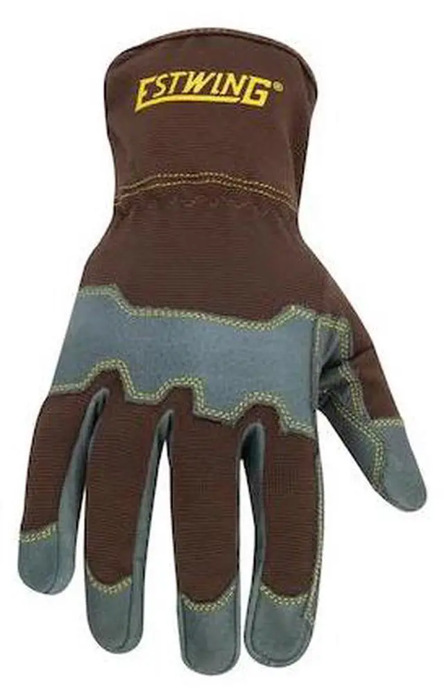 California Proposition 65: This product contains a chemical known to the State of California to cause birth defects or other reproductive harm. The only thing better than a good tool are the hands that hold it so protect those hands with a pair of Estwing work gloves. Designed to the same exacting standards as our hammers and striking tools, these gloves are made using high quality materials to provide you with the best in comfort and protection. The outer shell of these gloves is made from a polyester fabric blend that allows it to stretch in any direction to allow for added comfort, dexterity, and breathability. The palm of the glove made of buffalo leather renown for its exceptional resistance to abrasive wear to provide this glove with increased durability. Across the knuckles and the palm are additional strips of reinforcing leather to help protect against minor bumps and to add extra padding to those high wear locations. The elastic sewn wrist comes off easily in case the glove needs to be removed quickly while still ensuring the glove stays in place while you work. The open style cuff is elongated to provide extra coverage for wrists while helping to keep out dirt, debris, and other irritants as well as allowing the glove to fit over long sleeves.
