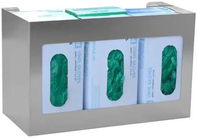 Omnimed hex glove box holders are constructed of durable stainless steel for a sleek, easy to care for finish that will withstand years of use and still look new. They are ideal for use in medical, lab and food prep functions or any area where Cross contamination is an issue or protective gloves are needed. Three boxes stack side-by-side and two deep to accommodate six boxes in all for high use areas. Dispensers measure 10HX 16WX 7 D. All single glove boxes fit this model.