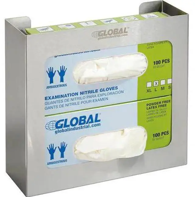 Glove box holders are constructed of heavy duty stainless steel for long lasting durability. Glove box holders allow convenient storage and easy access for boxed disposable gloves. They are ideal for use in patient rooms, hospitals, laboratories, kitchens and more. These glove box holders are simple to load and accommodate two glove boxes.