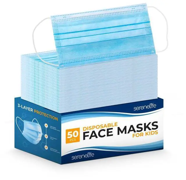 The SereneLife 50 Pcs. Disposable Face Masks (SLKDPLY50) are designed to provide 3-layer protection against airborne particles, dust, and other contaminants. These disposable face masks are made from skin-friendly, non-woven fabric and melt-blown fabric, ensuring that they are both breathable and comfortable for kids. With a soft, odorless design, these masks offer comfort throughout the day while maintaining industrial-grade filtration. The easy-to-use, single-use masks are ideal for daily protection in schools, playgrounds, or anywhere kids need to stay protected.