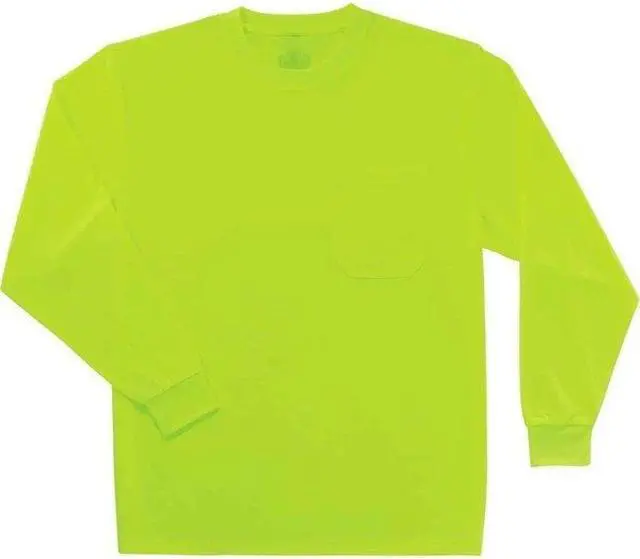 ERGODYNE 8091 Long Sleeve TShirt,Lime,NonCertified,5XL, Polyester, Lime, 5XL