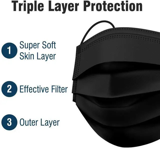 - Adjustable metal wire runs along the top as a nose clip; comes in midnight black.