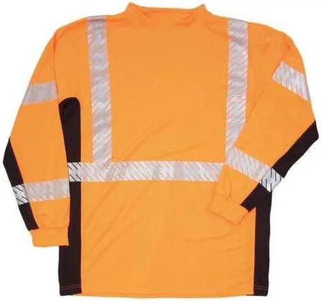 T-Shirt, Gender Unisex, ANSI Class 3, Shirt Style T-Shirt, Back Stripe Pattern U, Material Polyester, Number of Outside Pockets 1, Collar Style Lay Flat, Color Orange, Size 2XL, Size-Body Type Regular, Fabric Weight 0.8 lb, Reflective Tape Type Glass Bead, Reflective Stripe Border Type None, Garment Features Black Sides, Sweat-wicking, Standards ANSI 107 Type R Class 3 Compliant, Sleeve Type Long, Maximum Chest Size 48 in, ANSI Type R. This item has been restricted from sale in the following state (s): []