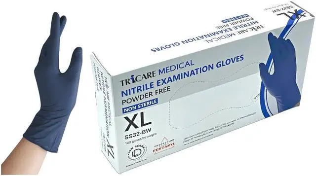 Enhanced Design: Tricare Medical Low Derma Technology Nitrile Exam gloves Known for its exceptional grip and tactile sensitivity. Commonly used for non sterile medical tasks. Can also be used for manufacturing, food service, cleaning, tattoo artists, barber shops and more. If your job requires wearing gloves, you will have to try these gloves. We are sure they will be your new favorite gloves. FDA approved for medical use, latex and powder free. 100 gloves per box or 1000 gloves/case (10 boxes). Sizes from Small to Extra Large.