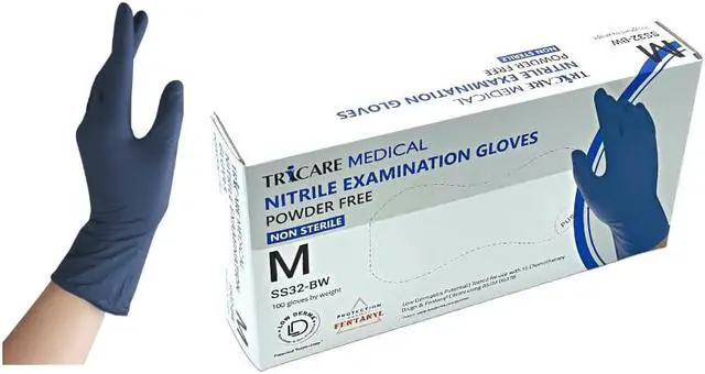 Enhanced Design: Tricare Medical Low Derma Technology Nitrile Exam gloves Known for its exceptional grip and tactile sensitivity. Commonly used for non sterile medical tasks. Can also be used for manufacturing, food service, cleaning, tattoo artists, barber shops and more. If your job requires wearing gloves, you will have to try these gloves. We are sure they will be your new favorite gloves. FDA approved for medical use, latex and powder free. 100 gloves per box or 1000 gloves/case (10 boxes). Sizes from Small to Extra Large.